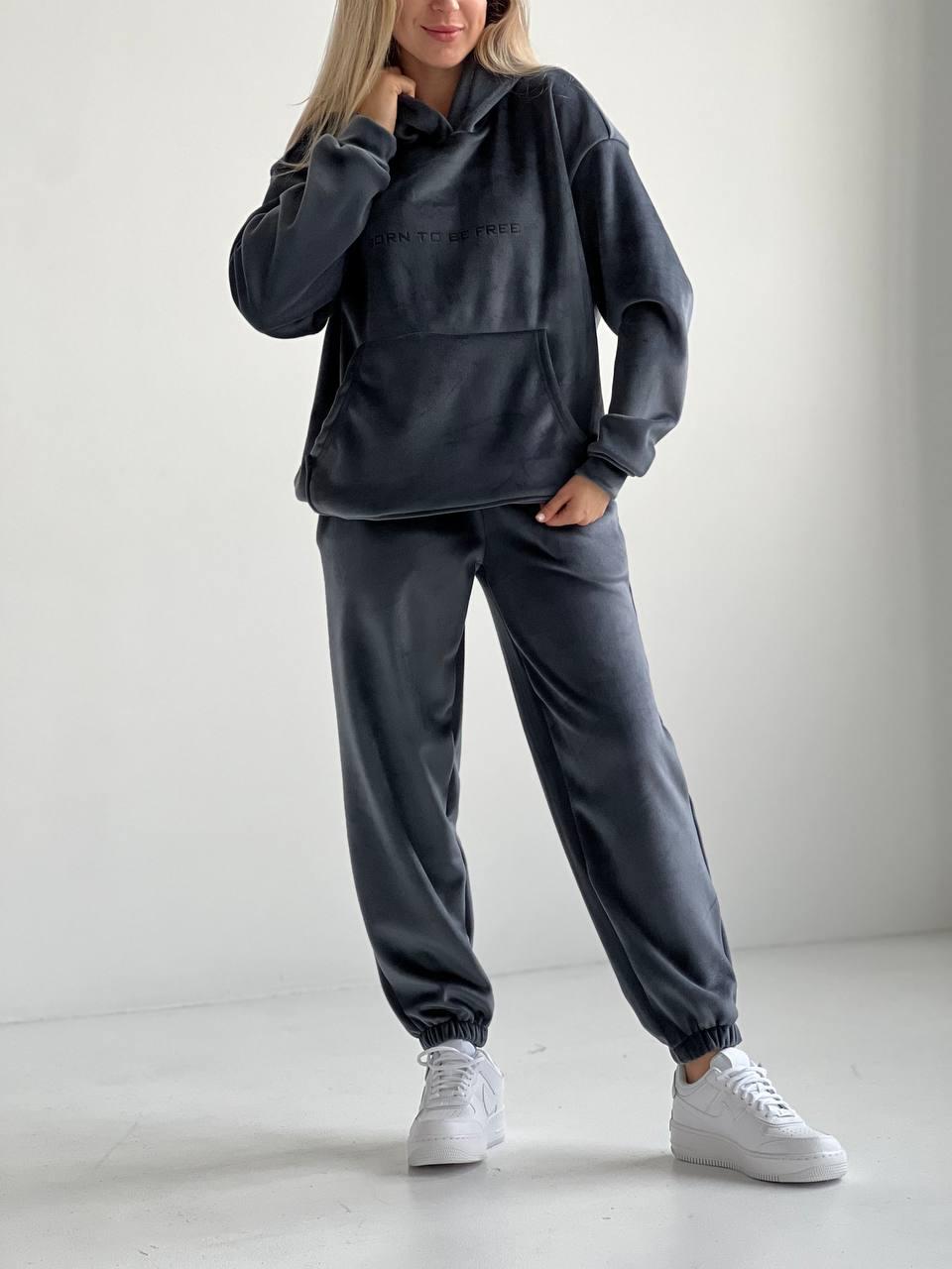 Графітовий теплий жіночий спортивний костюм із капюшоном із двостороннього велюру