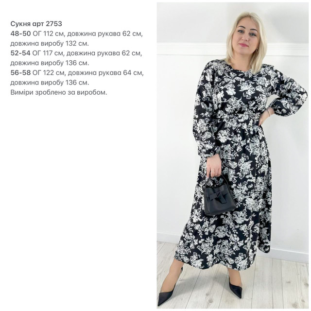 Максіплаття з довгим рукавом на гумці із софту квітковий принт батал