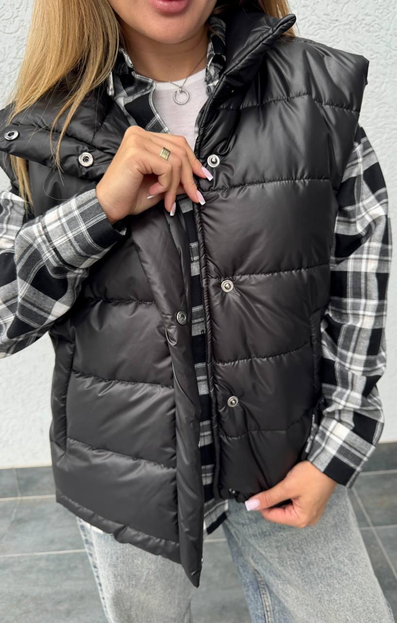 Жилетка прямого вільного крою, з двома карманами, застібається на кнопки