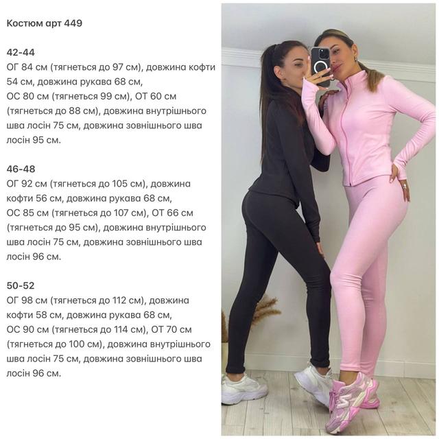 Костюм кофта на змійці, на рукаві виріз для пальця, лосини талія на резинці, посадка висока