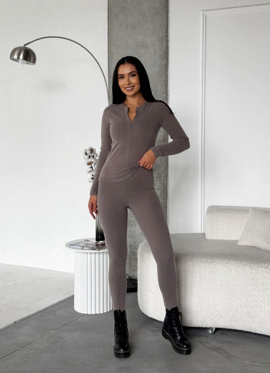 Сіро-кавовий теплий жіночий термо-костюм із трикотажу пума